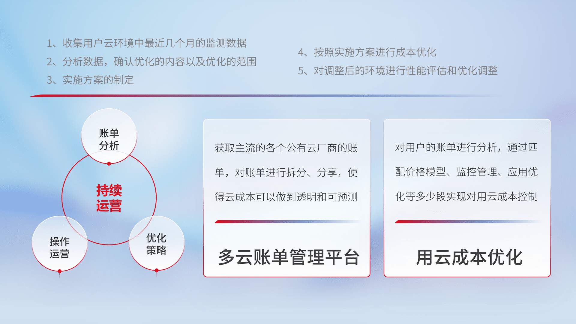监控业务系统资源开销,,,对资源的消耗精确计量,,,实现费用的透明化管理,,,,不断提升资源使用率,,,调整资源购买方式,,降低资源费用成本,,,,用云成本可预测、、、用云费用可优化,,云资源配额有据可依。。