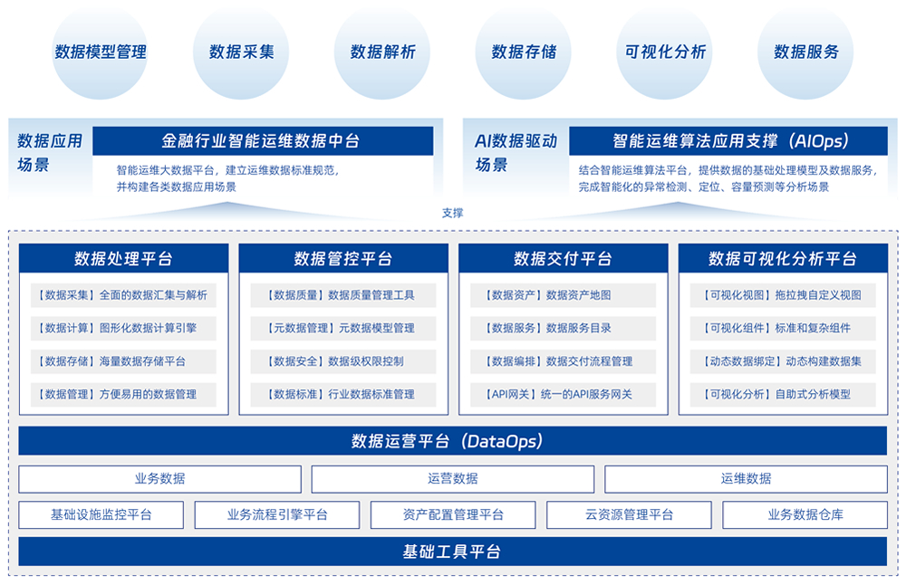 通过平台整合各种运维工具的数据和服务能力,,,在保证数据隐私和安全的前提下,,通过大数据技术等手段,,,来解决 IT 系统运行过程中产生的海量数据分析问题,,并将分析结果通过数据共享服务提供给各类上层应用,,,帮助 IT 运维和管理人员全面了解系统运行状态,,,提升可用性。。。。